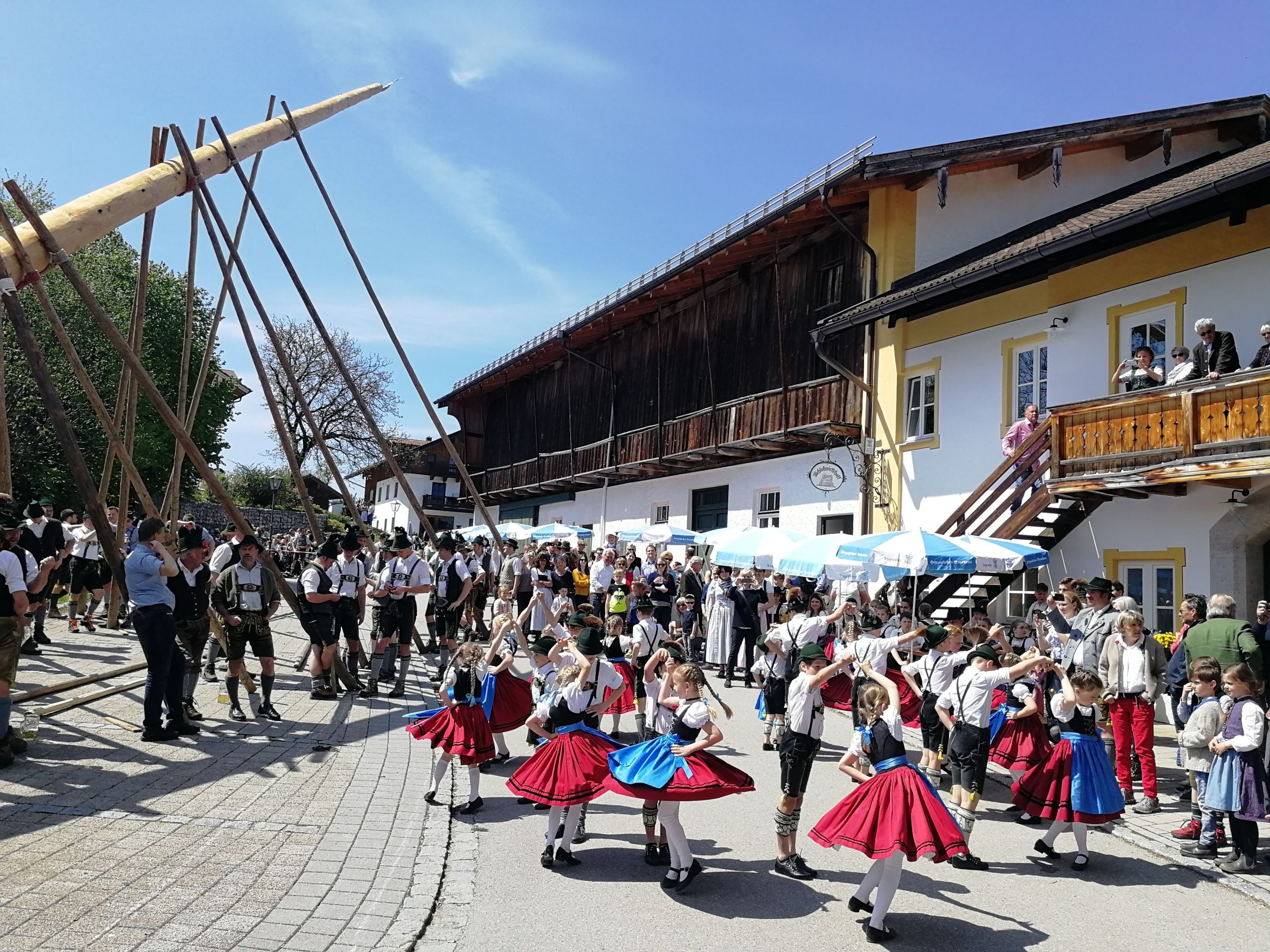 Maibaumaufstellen in Wildenwart vor der Schlosswirtschaft