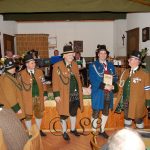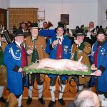 Hauptmann Wilhelm Schmidt bedankte sich bei den Abordnungen der Gebirgsschützenkompanien und Ortsvereinen für ihre rege Teilnahme am Jubiläumsfest. 1. Bürgermeister Olaf Karlsberger sprach lobende Grußworte und Landeshauptmann Martin Haberfellner brachte in kurzen Worten das Entstehen und den Sinn der Gebirgsschützenkompanien dar. Nach der Ehrengabe, einer besonders verzierten Lichtmeß-Kerze an alle teilnehmenden Fahnenabordnungen, überreichte die Ehrenkompanie Aibling ein Ferkel als Ehrengabe für den Jubilar. Unter den Klängen der „Holzhausener Theater-Musi“ klang ein wunderschöner Festabend aus.
