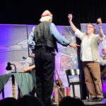 Das Wichtigste in der über zweitausend Jahre alten göttlichen Begebenheit zu Betlehem mit den herbergssuchenden Gästen aus Nazareth waren – so der findige Autor – die Zeitzeugen Esel und Ochs. Mitreißend und dennoch nachdenklich hinführend auf das wunderbare Geschehen waren zum Auftakt die selbst weitgereisten Musikanten von „So&So“, die seit 2017 mit Sebastian Huber in Kontakt sind. „Anfangs hat der Wast unsere CD-Covers gezeichnet, als wir von seiner Weihnachtsgeschichte erfuhren, überlegten wir ein gemeinsames Programm“ – so die Musikanten, die ihr Programm mit vier Bläsern, einer Gitarre und einer Ziach mit „Großvaters Walzer“ als Bühnen-Weltpremiere begannen.