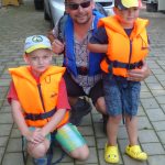 Fotos: „FREYA“ in ihrem Hafen am Schramlbad und auf großer Fahrt – Sicherheit wird groß geschrieben: auch Kinder bekommen eine Rettungsweste.