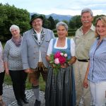 Chorleiterin Lisi Huber – die Vorsitzende der Katholischen Frauengemeinschaft Wildenwart Christine Osterhammer – Trachtenvorstand Peter Voggenauer – Erika Breitrainer – Chorleiter Ludwig Meier – die Vorsitzende des Wildenwarter Pfarrgemeinderates Anita Aicher (von links)