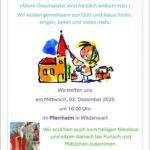 Die Veranstaltung beginnt um 16:00 Uhr im Pfarrheim Wildenwart. Gemeinsam wollen die Kinder von Gott und Jesus hören, singen, beten und miteinander Zeit verbringen. Passend zur Adventszeit wird an diesem Tag die Geschichte vom heiligen Nikolaus im Mittelpunkt stehen.
