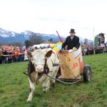 Diese Ochsenrennen könnten – zumindest im Chiemgau – eine ernsthafte Konkurrenz zur Formel eins werden. Gut 2500 Zuschauer – laut Stadionsprecher Martin Baumgartner – säumten bei vorfrühlingshaften Temperaturen die Rennbahn an der Wildenwarter Kirche. Sie bekamen sehr unterschiedliche sportliche Leistungen geboten. Während der spätere Sieger Lois seinen Vorlauf souverän gewann und von vorne herein allen Ehrgeiz zeigte, nahmen es einige andere, zur großen Belustigung der Zuschauer, mit dem Rennen und der sportlichen Pflicht nicht so genau. Gustl, Alfons und Xaver, die drei letztplazierten betrachteten intensiv die Berge und das erste Gras der Saison. Sie nahmen lieber Kontakt zu den vielen maskierten Zuschauerinnen auf, als sich beim Rennen allzusehr zu strapazieren. Dabei wussten sie nicht, dass sie sich mit dieser Einstellung selbst um die Siegerehrung und die Teilnahme am abendlichen Ochsenball im Feuerwehrhaus brachten. Alles Zureden und Anstacheln der Zugtiere vor den abenteuerlichen Gefährten half nichts: wenn Kai, Oskar und Greta nicht wollten, dann ging für ein paar Minuten gar nichts. Gustl verzichtete auf seinen Vorlauf und brachte es auch im Finale gerade einmal auf eine Wegstrecke von gut zehn Metern, das reichte bei einer Rundenlänge von 203,57 Metern natürlich nicht aus und brachte ihm den letzten Platz ein. Besonderes Interesse fand „Greta“ mit dem Braun Sepp am Zügel: da es Sonntag war konnte es nicht gut gehen mit den beiden, am Freitag wäre es vielleicht anders gelaufen und sie hätten eine future miteinander gehabt. Oskar durfte zum Abschluss als besonders süße Last einmal eine Runde mit dem Aschauer Prinzenpaar Philip I. und Franziska II. fahren. Die beiden Stadionsprecher Martin Baumgartner und Andreas Freund bekamen die Pointen von den verhinderten Rennläufern stets prompt geliefert. „Nächstes Jahr sollte der Fasching in den Sommer fallen“, meinte eine Zuschauerin, „dann macht es noch viel mehr Spaß“.