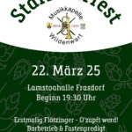 „Starkes Bier, starke Sprüche und starke Veränderungen“ – all das wird es beim traditionellen Starkbierfest der Musikkapelle Wildenwart am Samstag, 22. März in der Lamstoahalle von Frasdorf geben. Das Starkbierfest gilt als Auftakt des Jubiläums „70 Jahre Musikkapelle Wildenwart“, das mit Festtagen vom Freitag, 16. Mai bis Sonntag, 18. Mai auf dem Braunhof in Stupfa noch gesondert gefeiert werden wird.