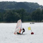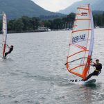 Auf einem „Up-and-down-Kurs“ war die Regatta auf sechs Wettfahrten ausgelegt. Am ersten Wettfahrtag hatten die Teilnehmer gleich tolle Surfbedingungen mit ansprechenden 3-4 Beaufort und vielen Böen. Von Beginn an hochmotiviert war der Priener Simon Huber. Der 14-Jährige setzte sich gleich bei der ersten Wettfahrt an die Spitze und gewann sie vor der gleichaltrigen Amelie Huber aus Aschau. Die zweite Wettfahrt wurde zu einem spannenden Zweikampf zwischen Eddie Burger, ebenfalls aus Aschau, und Simon Huber. Sie hatten im vergangenen Herbst bei der Deutschen Jüngstenmeisterschaft am Dümmersee in Niedersachsen die Plätze eins und zwei belegt. Die beiden lagen bis zur letzten Wendetonne bis auf wenige Meter zusammen, ehe sich Simon Huber die Wettfahrt durch heftiges „Pumpen“ sicherte. Die dritte Wettfahrt gewann er dann klar. Da der gute Wind anhielt, konnte Wettfahrtleiter Fredi Dillmann am ersten Tag noch eine vierte Wettfahrt starten. Diese sicherte sich der 15-jährige Lenny Friemel aus Burghausen, der in den ersten drei Wettfahrten auf die Plätze 3, 3 und 2 gekommen war, vor Simon Huber. Nach dem ersten Wettfahrtag führte dieser klar vor Friemel, Eddie Burger und Amelie Huber.
