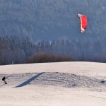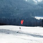 Bei kräftigem Wind und eisiger Kälte ist es nicht Jedermann´s Sache, die warme Wohnstube zu verlassen, dennoch erfreuen sich viele Menschen an der sonnengetränkten freien und frischen Natur. Zu den Wenigen, die in der Samerberger Frischluft richtig aktiv geworden sind, gehört dieser Snowkiter, der sich über die hügelige Landschaft ziehen lässt und offenbar den Sport genießt.