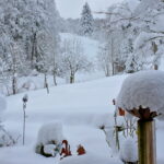 Bei uns im südlichen Chiemgau ist der Winter zurückgekehrt. Ca. 25 cm Schnee bedecken rund um Kühleiten (ca. 640m) die noch vor zwei Tagen voll aufgeblühten Krokusse und Schneeglöckchen rund um unser Haus. Und auch am Futterhaus vor dem Küchenfenster ist heute richtig Betrieb.