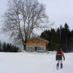 Während es im Tal noch stark regnete, fing es am Samerberg – wie bestellt – bereits zu schneien an. Die Bäume entlang des Weges über die Kräuterwiese waren ganz in weiß gehüllt. Die frische Winterluft machte die Lungen weit fürs anschließende Jodeln in der Käseralm. Die Wirtsleute Wiesholzer hatten einen extra Raum für die Jodler reserviert, so dass ganz ungeniert zusammen gesungen wurde. Beim Abmarsch ging es dann sehr beschwingt wieder zurück nach Grainbach. Zum Abschluss wurde noch der „Hochrieser“, gesungen, ein einfacher, aber sehr stimmungsvoller Jodler.