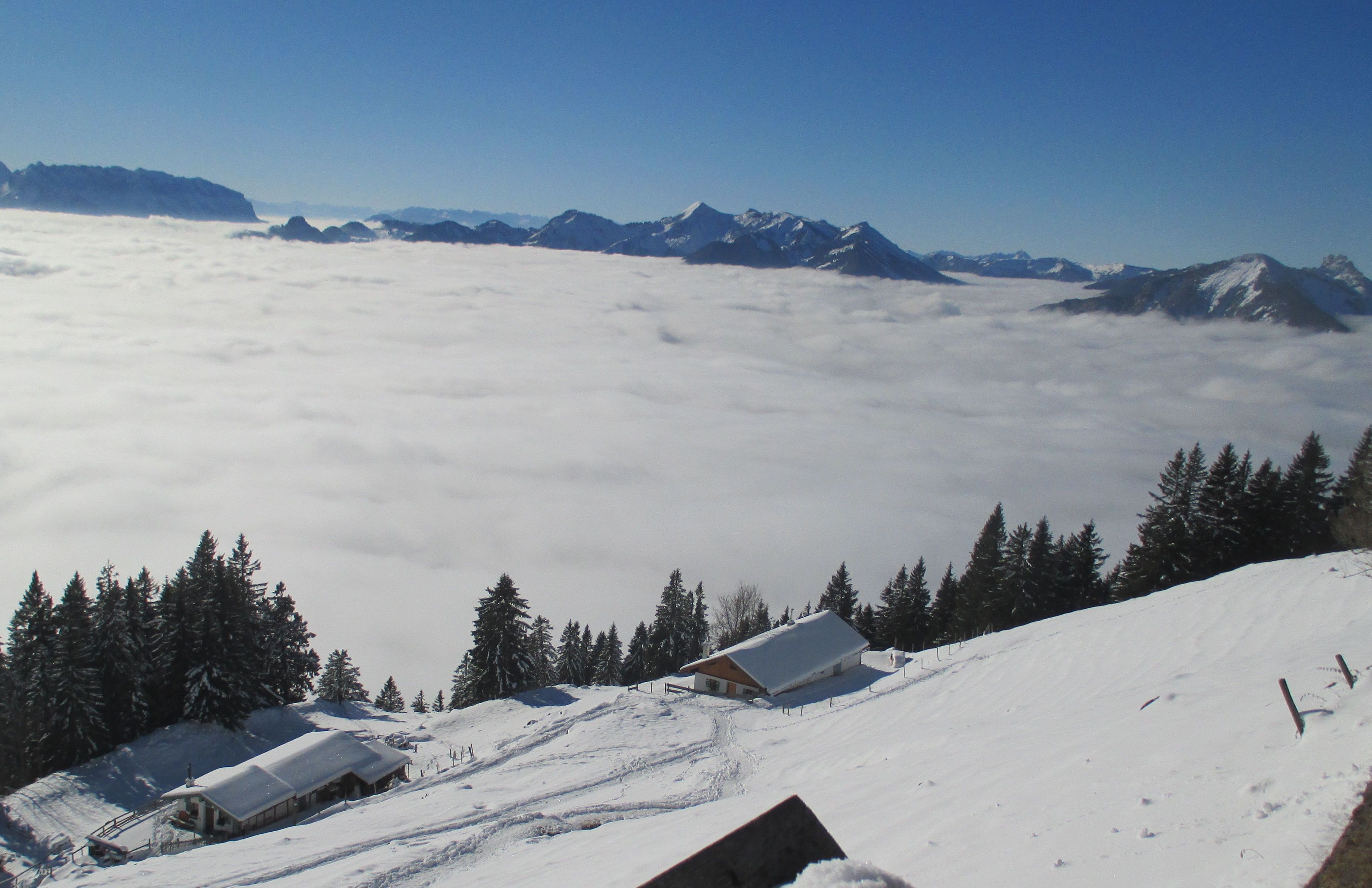 Enzianhütte und Moaralm über Nebel