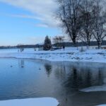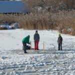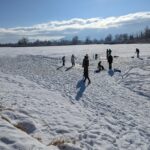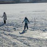 In Schafwaschen bot sich eine besonders stimmungsvolle Winteridylle. Das Glitzern von Eis und Schnee verlieh der Landschaft eine ganz eigene Magie. Eisstockschützen nutzten den vereisten Boden des Wanderparkplatzes für ihr Spiel. In der Schafwaschener Bucht wagten sich mehrere Menschen erstaunlich unbeschwert auf die Eisdecke, obwohl vor deren Betreten gewarnt wurde. Andere frästen ein Loch ins Eis – möglicherweise zum Fischen. Auch Schlittschuhläufer waren auf der Eisfläche unterwegs, aber nur in Ufernähe wo es ungefährlich war.