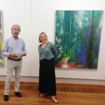 Bei der Vernissage führte Kurator Rudolph Distler ein Gespräch mit Yvette Kießling vor zwei ihrer Gemälde aus dem Regenwald (ausführlicher Bericht folgt).