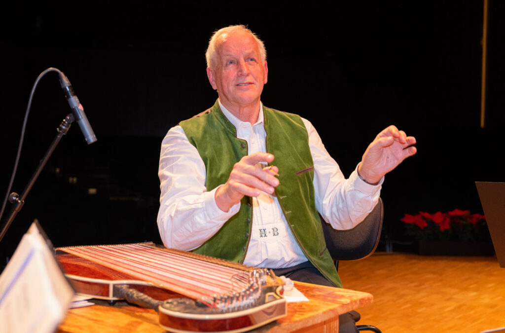 Neben seiner herausragenden Leitung und den eigens komponierten Stücken beeindruckte Hans Berger das Publikum des diesjährigen Rosenheimer Adventssingens auch mit seiner virtuosen Zitherdarbietung. Der Dirigent und Komponist zeigte nicht nur sein außergewöhnliches Talent in der Führung des Ensembles, sondern auch in der aktiven Mitgestaltung der musikalischen Darbietungen. Während des Adventssingens begleitete Hans Berger die Aufführungen mit meisterhaften Zitherklängen, die die festliche Atmosphäre des Events noch intensiver erlebbar machten. Sein virtuoses Spiel fügte sich harmonisch in die Gesamtkomposition ein und verlieh den Stücken eine zusätzliche klangliche Dimension. Die Zither wurde unter den geschickten Händen von Hans Berger zu einem wahren Highlight des Abends.