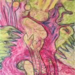 Die Zeitenwende hat längst begonnen. Das Bild von Christa Ulmer- Thurn, 2013 gemalt und benannt Zeitwende /siehe Katalog des Künstlerkreises, weist auf den Zusammenbruch der alten Welt hin. Das Bild „Stopp“ von Ingeborg Benninghoven ist ein Warnschrei in diesem Zeitraum gegen Krieg und Zerstörung, die Aufforderung „wir Menschen müssen uns ändern“, damit die Zeitenwende gelingt. Frau Ulmer- Thurn hinterfragt in einer illustrierten Geschichte für Erwachsene das Menschenbild. Frau Benninghoven richtet den Blick vom Schaffungsakt über die Unzulänglichkeiten irdischer Körperlichkeit sowie Liebe und Tod bis zu überirdisch schwebenden Mischwesen. Sie spannt in ihren Bildern und Plastiken den Bogen von Menschlichem zu Unmenschlichem auf der ständigen Suche nach Beweglichkeit hin zur Leichtigkeit des Seins.