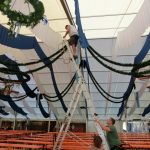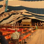 Das Zelt war schon eine Woche früher gekommen, über einhundert Helfer sind teilsweise seit zwei Wochen ständig am werkln. Und trotzdem, es gibt noch genug wichtige Kleinigkeiten zu erledigen. Heut war die Zeltabnahme, alles bestens, aber hier noch zwei Haken, die tiefer versenkt werden müssen, da noch ein paar zusätzliche Notausgangsschilder, die beim Aufbaun in irgendeiner Kiste verschwanden, das Gauzeichen und das Rottauer Vereinszeichen müssen noch aufgehängt werden. Morgen treffen sich die Frauen noch einmal zum Girlandenbinden. „Wir brauchen doch noch mehr, als gedacht“ stand in der Rund-Email, und schon werden die frischen Daxen geliefert, damit auch am Bühnengeländer noch was Grünes erfrischt.