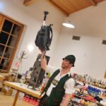 Auch dieses Jahr war Josef Bauer – „Pfeiffer Sepp“ der Versteigerer, der mit Witz und Humor durch den Abend führte. Im vergangenen Jahr trat er in die Fußstapfen seines Vaters Hartl Bauer, der als Versteigerer den Trachtenverein Jahrzehnte lang die Treue hielt. Sepp Bauer – „Pfeiffer“ bedankte sich bei allen Helfern und Gönnern, die es durch Ihre Sachspenden jedes Jahr wieder ermöglichen die Versteigerung abzuhalten. Mit seinem Talent brachte er anschließend alle Versteigerungsgegenstände, Maschinen sowie die teilweise durch Mitglieder handgefertigten Werkzeuge und unzählige Brotzeiten wie selbstgemachtes Brot oder Geräuchertes Fleisch „unter den Hammer“. Sehr beliebt waren auch die Überraschungspakete, bei denen niemand wusste, was sich in den Taschen und Rucksäcken befindet. Als Höhepunkt wurde als letzter Gegenstand die handgefertigte Hausbank mit anklappbaren Tisch spannungsvoll versteigert.