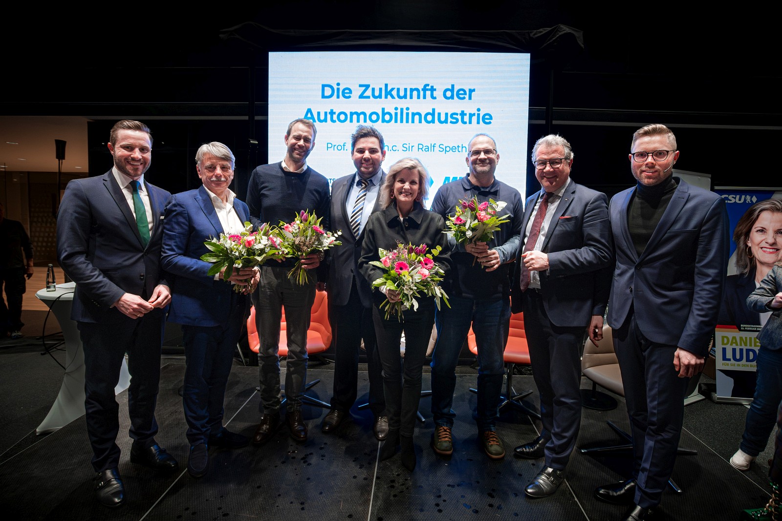v.l.n.r. Daniel Artmann MdL, Prof. Dr. Dr. h.c. Sir Ralf Speth KBE FREng FRS, Dr. Max von Bredow, Tobias Jonas, Daniela Ludwig MdB, Prof. Christian Arbinger, Klaus Stöttner MdL a. D., Fabian Artmann