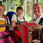 Zum Saisonschluss der Chiemsee Ringlinie bestritt das Hopfberg Trio den letzten Termin in der neuen Reihe „Chiemsee-Bus-Musi“. Insgesamt fünf traditionelle Volkmusikgruppen sorgten zu Beginn und am Ende der abgelaufenen Fahrzeit für Stimmung und eine einmalige Busfahrt um den Chiemsee herum. So eben auch das Trio um den Überseer Ziachspieler und Gstanzlsänger Simon Berger, der mit ihrer einzigartigen Altstimme gesegneten Anita Rottenkolber aus Dietersdorf bei Schweitenkirchen und der aus Burgstall bei Wolnzach stammenden Sängerin und Gitarrenspielern Rosa Karger, im Chiemgau auch bereits bekannt durch das Duo „Rosa und Simon“.