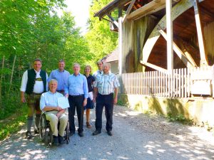 Foto (v. l. n. r.): Hintere Reihe: – Werner Schroller, Touristeninformation Kiefersfelden – Hubert Wildgruber, 2. Vorsitzender der LAG Mangfalltal-Inntal und BGM Gemeinde Oberaudorf – Sebastian Wittmoser, LEADER Koordinator Oberbayern Süd – Gwendolin Dettweiler, Management LAG Mangfalltal-Inntal – Sebastian Senftleben, Kämmerer Gemeinde Kiefersfelden – Sebastian Bleier, Projektinitiator Vorne: – Hajo Gruber, Bürgermeister Gemeinde Kiefersfelden